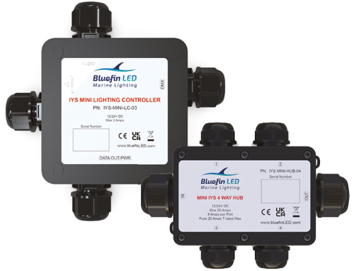 Der Mini IYS Controller von Bluefin ist ein intelligentes, modulares Lichtsteuerungssystem für RGBW-Unterwasserleuchten. Mit WLAN- und Ethernet-Anbindung ermöglicht er Dimmen, Farbwechsel, Sound-to-Light und DMX-Steuerung – ideal für 12/24V-Bordnetze im maritimen Einsatz.
